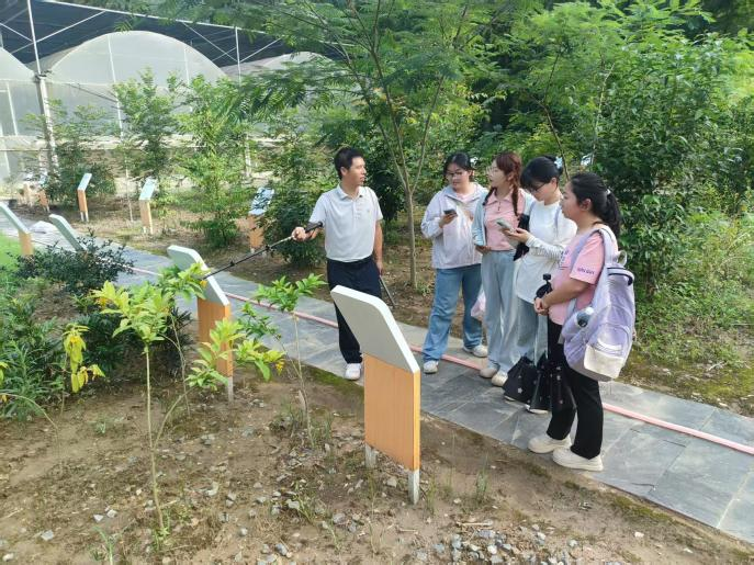 在中药材种质资源保存圃,铁皮石斛以石上附生、木上缠绕、设施栽培三种形态生长,展现“顺境出产量,逆境出品质”的哲学。陈超老师展示模拟野生环境的松鳞基质,讲解石斛羊粪施肥、春季移栽等种植要点。黄精田圃前,他挖出多花黄精幼苗,指出其一年长一节,需三五年入药,“九蒸九晒”炮制法可提升药性。在林下生态区与种植品种展示园,学子们认识了草珊瑚、岗梅等药材,知晓它们在牙膏、药品中的实际应用。陈老师扎根田间十年的经历,让学子们明白药学研究需打破学科界限。